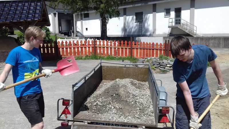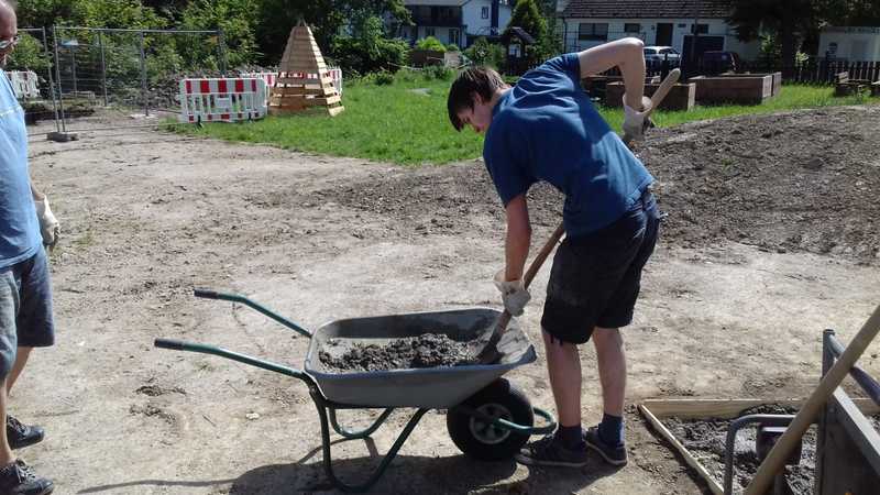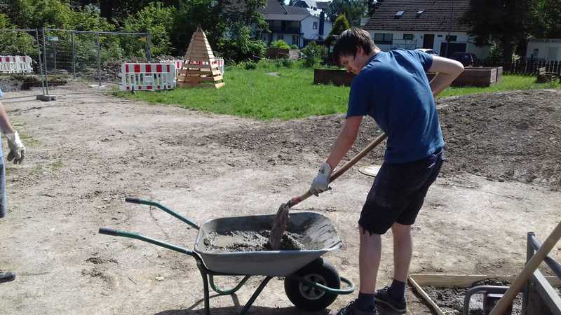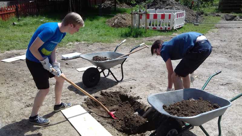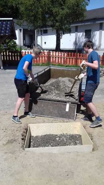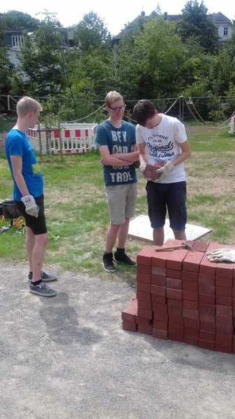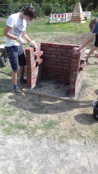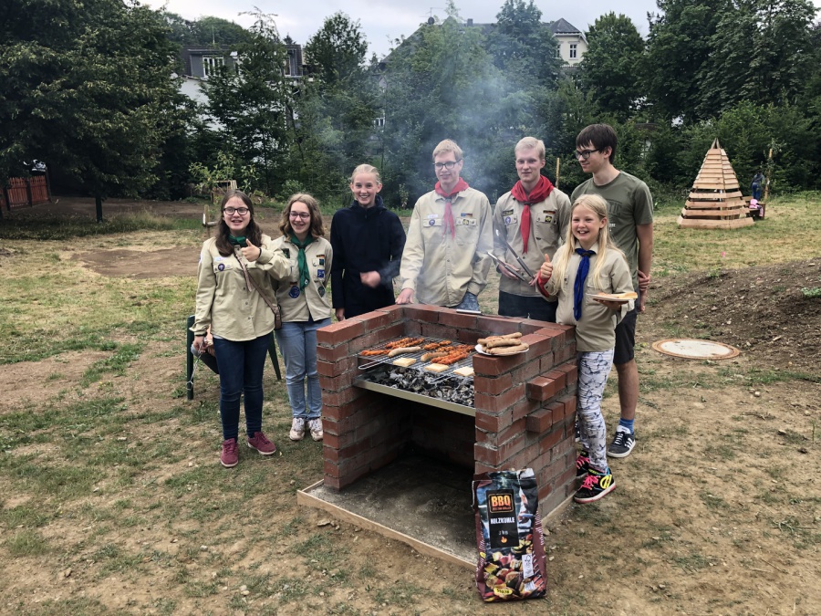 Nachdem Frau Ramackers den Netzwerkgarten in der Waldbröler Leiterrunde, zu der auch die Rover anwesend waren, vorgstellt hatte, war die Idee, dort einen Grill zu bauen, geboren. Am 01.06. wurde dann mit dem Grillbau bekonnen: Es wurde das Loch für das Fundament ausgehofen, welches anschließend gegossen wurde. Bei ca. 30 Grad an diesem Tag eine ziemlich schweißtreibende Veranstaltung. 3 Wochen später, am 22.06., traf man sich erneut, um den Grill zu mauern. Die Einweihung soll im Rahmen der Gruppenstunde am 11.07. stattfinden.